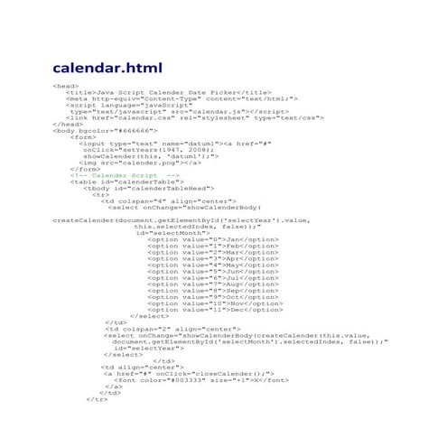 Calendar Html Code Ordinary