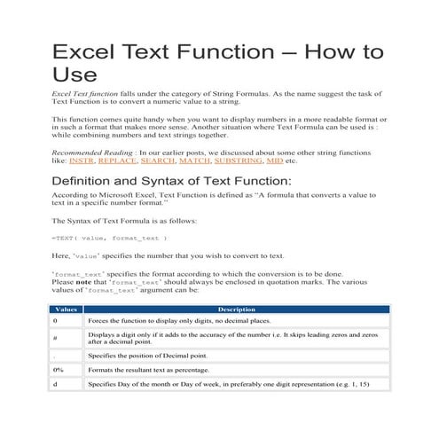 Text Function Excel Example